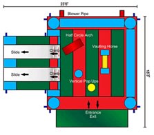Dimensions Our Sports Bubble Combo Castle requires an area of 6m x 8m and 3.9m high