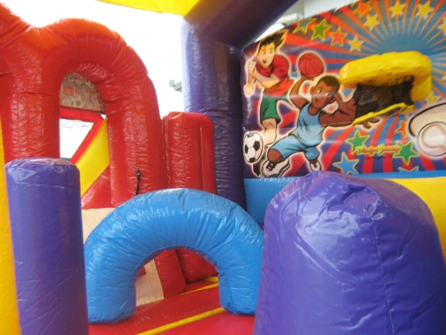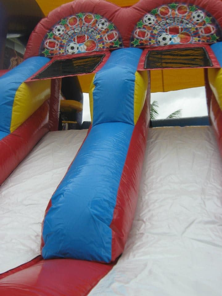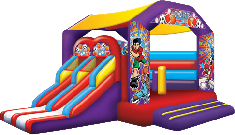 This one has it all, football, soccer, basketball and baseball. Bring some competition to your next event! A wide-mouthed opening leads participants into the large jumping area, basketball hoop and several obstacles for hours of sportsmanship fun. Two awesome, double-railed, side-by-side slides act as the castle exits, until it is time to run around for more.