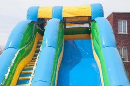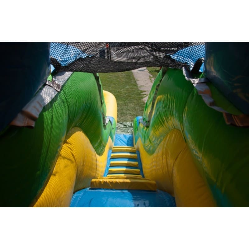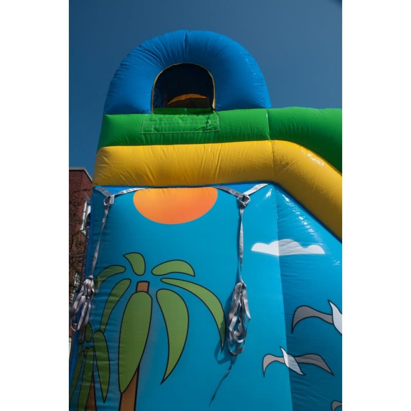 Our Tropical Island Water Slide requires an area of 10m x 4.5m and 4.8mhigh