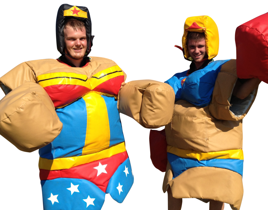 Includes 2 Super Sumo Suits, 2 Helmets and 4m2 Sumo Wrestling Mat