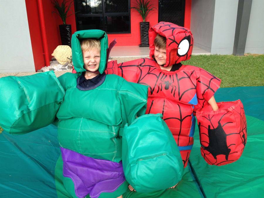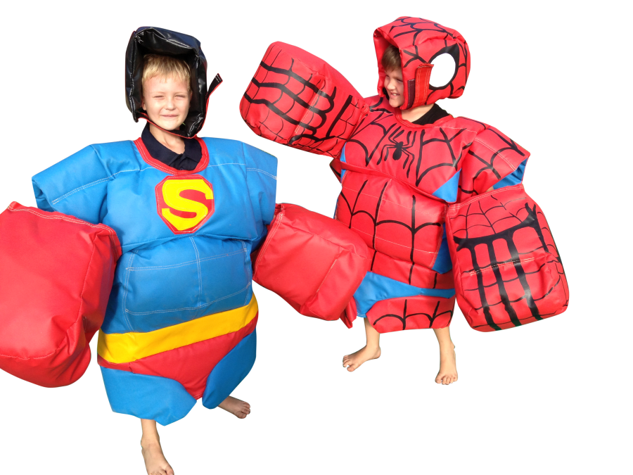 Add Mini Superman and Spideman Sumo Suits to your next party and SUPERSIZE your Entertainment!