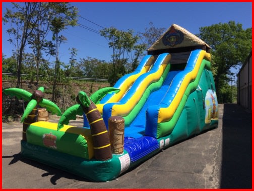 Our Tiki Island Water Slide requires an area of 11m x 5m and 6m high